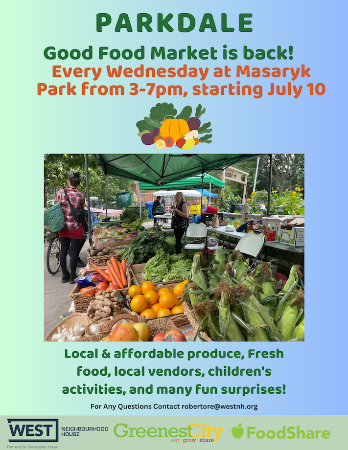We are excited to see you this summer at the Parkdale Community Good Food Market!