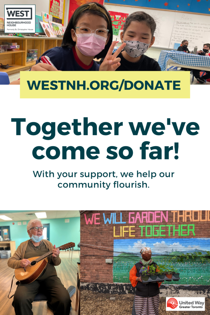 By giving to West Neighbourhood House this year, you will support neighbours to pursue dreams and contend with today’s economic reality. You will also make it possible for the House to continue addressing social issues like housing affordability, social exclusion, and mental health.