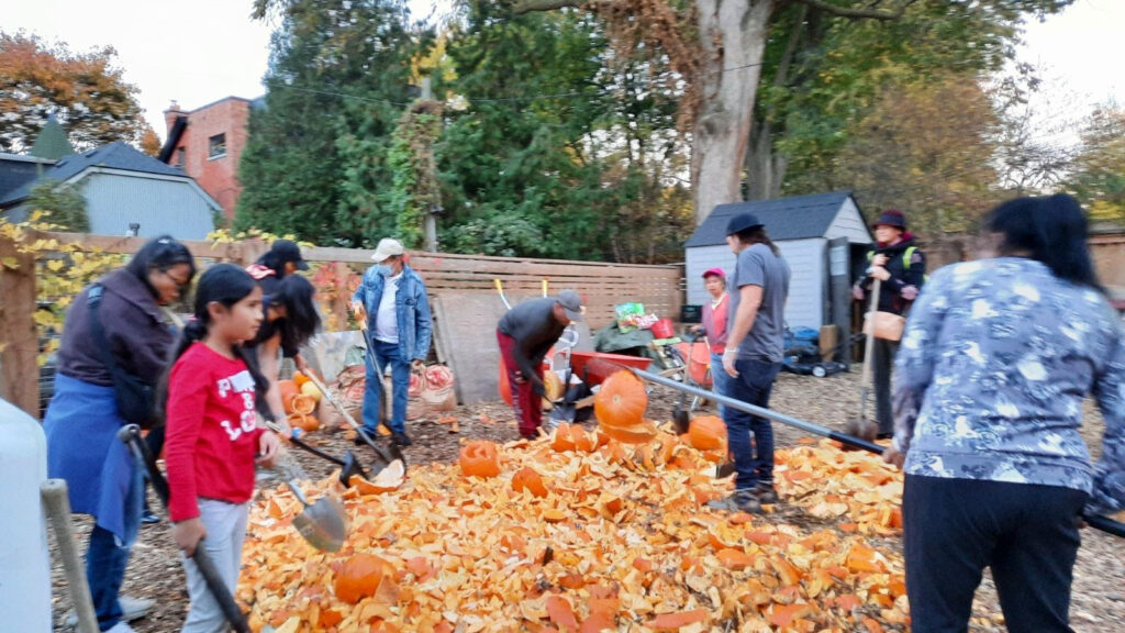 At the end of October, we hosted a fun and lively Smashing Pumpkins Compost Workshop, and it was a huge success! The event wasn’t just a workshop—it was a celebration. We were excited to learn how pumpkins could be transformed into nutrient-rich compost, and we were joined by amazing facilitators from Compost Toronto, experienced gardeners, and youth from the West Neighborhood House and Newcomer Youth Program. Together, we smashed pumpkins, enjoyed the crisp weather, grooved to great music, and connected with one another. It was a perfect blend of hands-on composting, sustainable gardening, and community-connection.