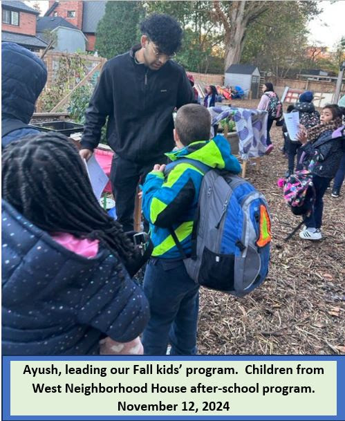 We are especially grateful for the insightful contributions of our community volunteers like Evidence Ugberase, who supported us through the season. Evidence reflects, “During my 3-month volunteer experience with West Neighbourhood House, Greenest City, I had the opportunity to learn valuable skills in plant cultivation, water plant management, and environmental care through informative workshops. It was a fulfilling time spent with the Parkdale community, where I shared many fun and memorable moments. A special thanks to the entire Greenest City team for their guidance and support throughout this enriching experience. Their dedication made this journey truly rewarding, and I’m grateful for all the knowledge and connections I gained.”