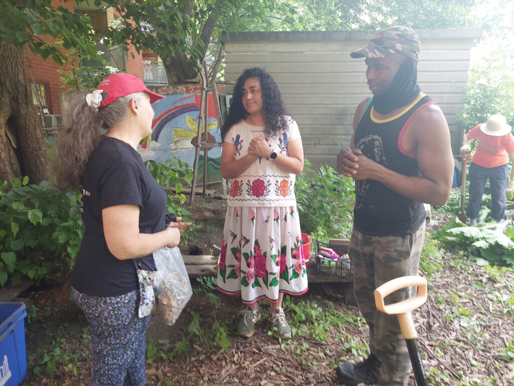 We want to start our program review highlights by focusing on the Dunn Indigenous Garden (DIG). As part of our land-based work in Parkdale, one of our greatest commitments is righting relations with Indigenous peoples. This year, we dedicated ourselves to collectively stewarding DIG, a process that required immense time, energy, and collaboration. Just as the name suggests, we’ve been digging—both literally and metaphorically—into the land, knowledge, and relationships. Reopened in the spring, the garden has become a vital space where Indigenous earth workers can cultivate food, medicines, and native species, and hold important ceremonies.